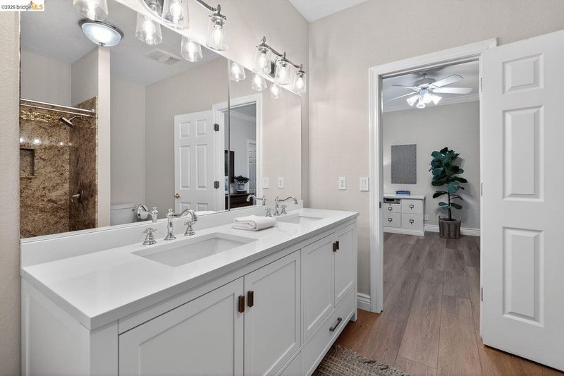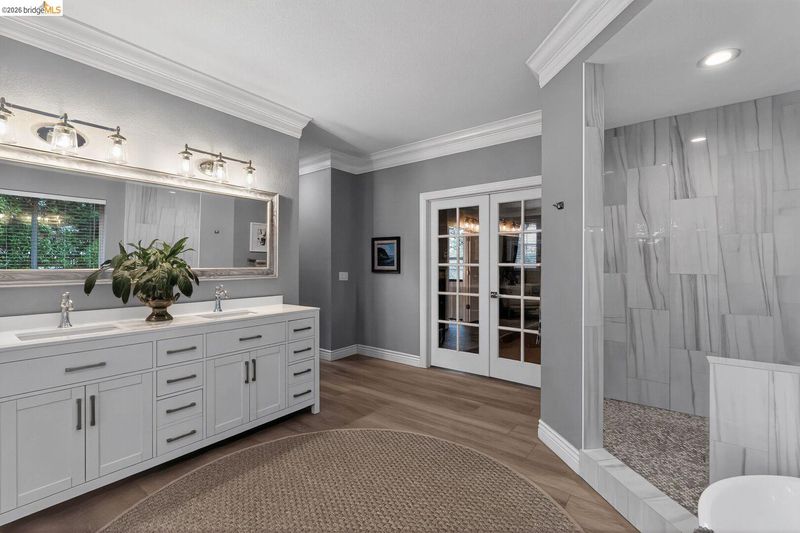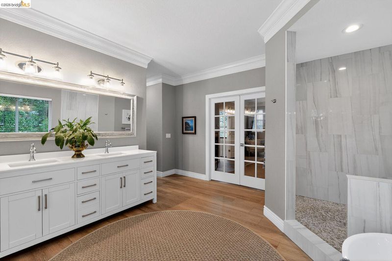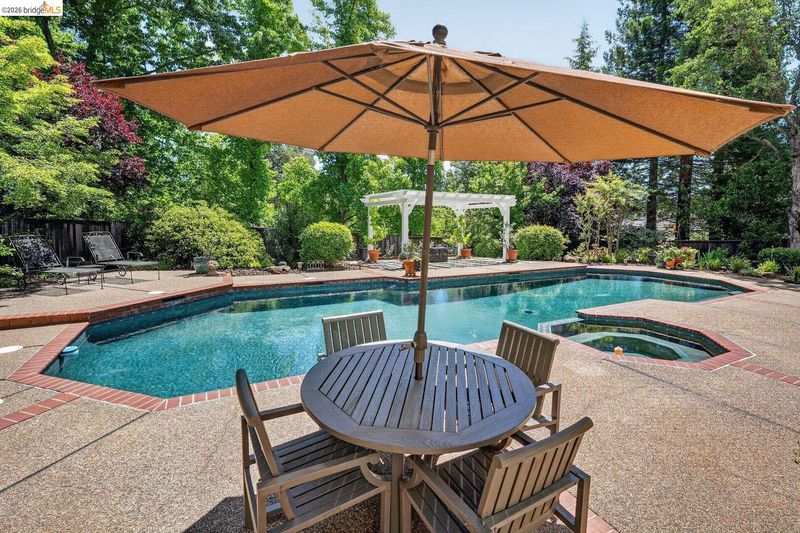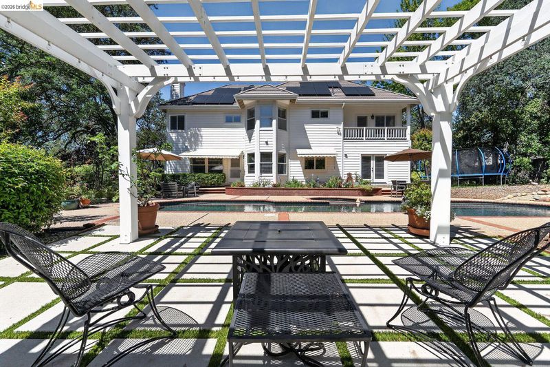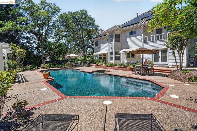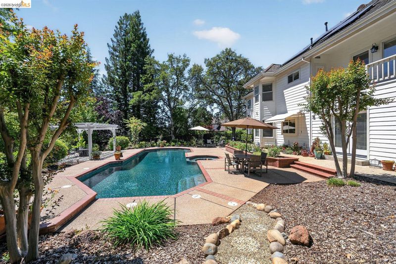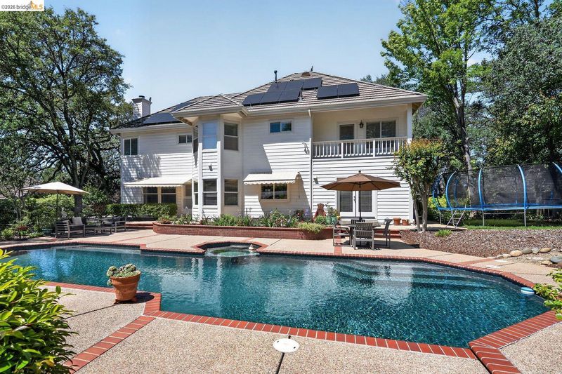 Fully remodeled home in the sought-after Sterlingshire neighborhood of El Dorado Hills offering 4,221 sq ft, 5 bedrooms, 4.5 bathrooms, plus an upstairs movie-room den. The open-concept gourmet kitchen features new quartzite countertops, waterfall island, and rolling chef's island overlooking the dining and formal living areas. The newly remodeled primary suite includes a soaking tub and double shower. Additional upgrades include quartzite in the movie room wet bar and oversized laundry room. Besides the formal living room that flows seamlessly into the kitchen, you also have a separate informal living room with a rare wood fired forced air fireplace. Enjoy resort style living on this .56-acre lot with a pool, spa, gazebo, and three outdoor dining areas, all visible from the kitchen. Energy-efficient features include new solar with 10kWh home battery and a forced-air wood stove capable of heating the entire home, plus split-level central AC/gas. Minutes to private trails and parks.