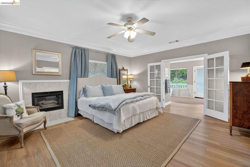 - Brick, Family Room, Living Room, Master Bedroom, Raised Hearth, Wood Burning, Gas Piped