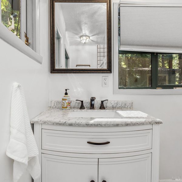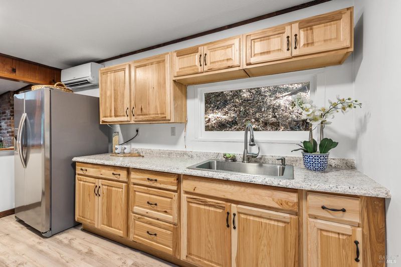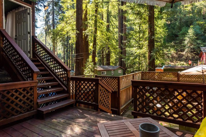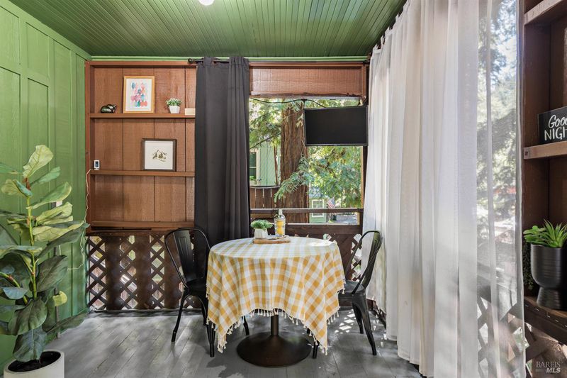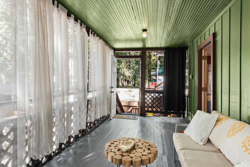 15256 Canyon 3 Road captures the easy going spirit of Rio Nido living. Tucked into this welcoming river community and located outside the flood zone, this one bedroom, one bath cabin reflects that classic Russian River lifestyle where weekends naturally turn into long, relaxed stays. Inside, warm wood paneling gives the home that nostalgic cabin feel while the open living area allows the space to flow comfortably for gathering with friends or spending a quiet evening in. The kitchen has been updated with rich maple cabinetry and opens directly to the main living area, creating a natural connection between the spaces. One of the standout features is the covered enclosed sun porch, a welcoming nook for coffee, casual meals, or an evening cup of tea while looking out over the trees. It adds an extra living space that extends the home outdoors. Step outside to a fenced patio area that sets the scene for summer dinners, relaxed afternoons, and entertaining. Bring your imagination this downstairs area could easily become the workspace or flex room you've always envisioned. Life here is as much about community as it is about nature, with the Russian River just a quick jaunt away for swimming or floating, and the Rio Nido Roadhouse nearby for live music, good food, and gathering with neighbors. Only a couple miles to downtown Guerneville, about 15 miles to the Sonoma County Airport or the beaches of Jenner, and under 20 miles to Santa Rosa shopping, this West County cabin offers a simple place to settle in and enjoy everything the Russian River area has to offer.