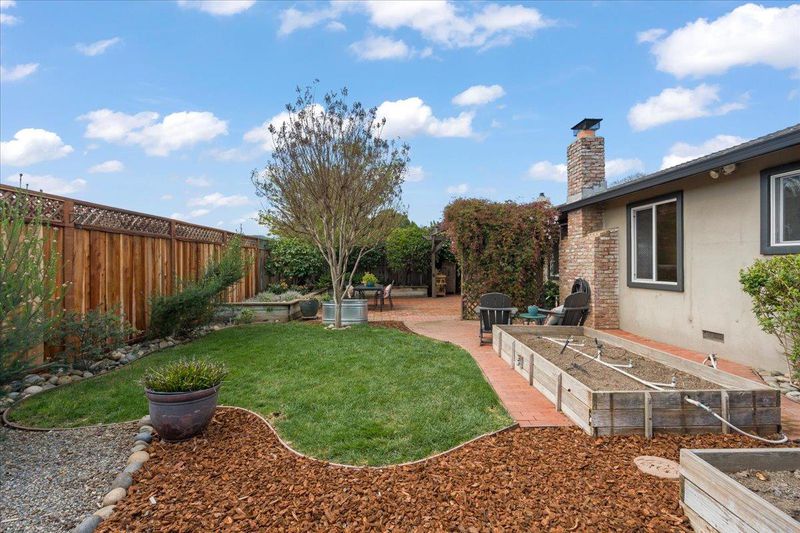 Nicely updated home with lots of character and a cul de sac location! The front yard beckons with lovely landscaping and built in seating. A classic upgraded front door leads the way to this 3 bedroom, 2 bath home with a beautiful kitchen, large dining area, living room, and den or office space. The home is bright with updated lighting and fresh interior paint. There is a warm fireplace, wood accented walls and hardwood floors in the living room. The kitchen is inviting, with rich wood counters, subway tile and copper embossed tile back splash, a copper farmhouse sink, gas range, color coordinated cabinets and breakfast bar seating. The primary bedroom features a refreshed bathroom with barn door, a newer vanity and frameless glass enclosure for the newer tile shower. The main hall bath has also been updated with vanity and tile in the shower over tub. The backyard, accessed by double French doors, features a large brick patio with plenty of space to BBQ, raised garden beds, grassy area and additional storage units. The two car garage has an automatic opener. Dual pane windows, A/C and a whole house fan are additional great features.