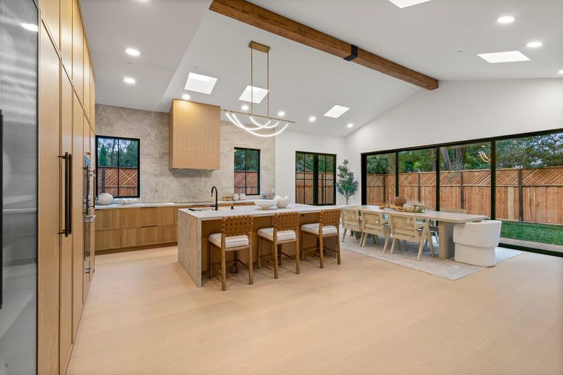 A rare, statement-level new construction by Sterling Homes, 15 San Juan Avenue sets a new standard in West Menlo Park. Spanning 4,726 sq. ft. across two levels on a private, tree-lined lot, this 5-bedroom, 5-bath Transitional residence delivers scale, design, and effortless indoor-outdoor living. The main level is built to impress. A dramatic vaulted great room opens seamlessly to the outdoor living spaces, creating a true California flow. The chefs kitchen anchors the home with a large island, butlers pantry, and central dining designed for both everyday living and entertaining. A private ADU with kitchenette and en suite bath offers flexibility for guests, office, or multigenerational use. Upstairs, a light-filled loft, dedicated laundry room, and well-appointed ensuite secondary bedrooms provide comfort and function. The grand suite is a retreat of its own, featuring two spacious walk-in closets and a spa-inspired bath with soaking tub, oversized shower, and refined finishes throughout. Located in the top rated Las Lomitas School District. Ideally positioned just blocks from Alameda de las Pulgas and minutes to Stanford University and Atherton, this home offers the rare combination of privacy, convenience, and elevated design.