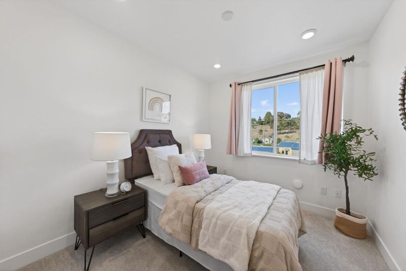 Experience elevated modern living in this beautifully appointed 1,152 sq ft, 3-bed, 2-bath corner residence, ideally situated on the fourth floor with rare mountain views from every room. Built in 2022 in Fremonts highly sought-after Irvington neighborhood, this home blends comfort and style. Step inside to high ceilings, recessed lighting, & stunning LVP flooring with an open-concept layout. The gourmet kitchen flows seamlessly into the family room, featuring quartz countertops, shaker white cabinetry, gas range, & stainless steel appliances. Enjoy your morning coffee or unwind on the private balcony overlooking mountain views. A convenient washer and dryer closet adds everyday functionality. The primary suite features mountain views, abundant natural light, a walk-in closet, and a spa-like ensuite bath with double vanity and step-in shower. Two additional bedrooms are well-sized, ideal for guests, family, or an office. Additional highlights include two parking spaces in a secure gated garage + secure building entry. The community also offers a fitness center and playground. Ideally located near Apni Mandi Farmers Market, and top-rated Hirsch Elementary and Irvington High. Modern design, premium features, and an unbeatable location make this a rare opportunity not to be missed.