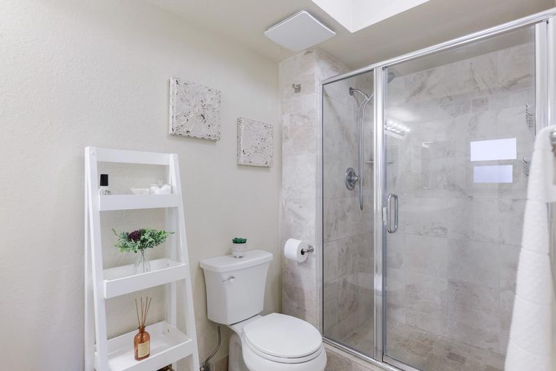 - Shower over Tub - 1, Solid Surface, Stone, Updated Bath, Full on Ground Floor, Primary - Stall Shower(s)