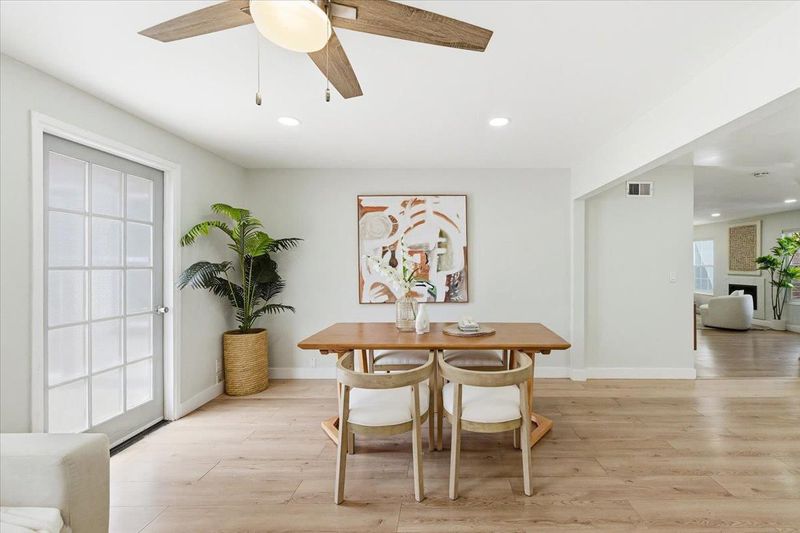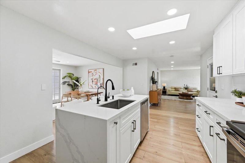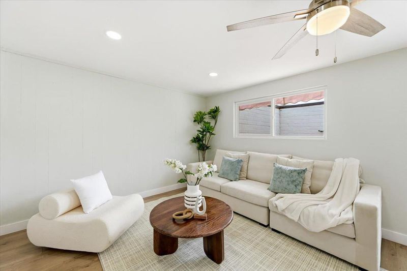 Welcome to this meticulously maintained North Fremont residence in the highly desirable Lakes & Birds Community, where modern elegance meets functional design. Extensively renovated in 2022, this 3-bedroom, 2-bathroom home offers 1,148 sqft of refined living space, further enhanced by a versatile 228 sqft family room perfect for entertaining or a home office. At the heart of the home lies a sun-drenched chefs kitchen, boasting a signature skylight, custom island with integrated sink, and premium electric cooktop. The seamless flow leads to a spacious dining area and a separate living room, featuring an updated electric fireplace that creates a warm, inviting retreat. High-end upgrades include new designer flooring throughout, fully remodeled bathrooms, and recessed lighting. Step outside to a private, fully fenced oasis with lush greeneryperfect for summer gatherings. Complete with a two-car garage and forced air heating, this turn-key gem is ideally positioned within the prestigious Fremont Unified School District, offering unparalleled access to top-rated schools, local parks, and major commuter routes.
