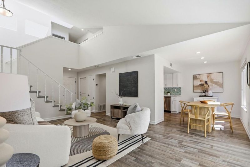 Upon entering this rare, end-unit retreat, you'll be greeted by plenty of natural light, high ceilings, and a feeling of having arrived to your own private sanctuary. A perfect blend of modern upgrades with a private yard. New flooring, new paint, a sparkling kitchen with a colorful, cheery vibe, and remodeled bathrooms mean that you can move right in and enjoy! This unit has a premium location that boasts extra windows and views to the lawn and trees right outside. Don't miss the generously-sized private yard with a deck for entertaining or unwinding at the end of the day. Just moments away from charming downtown Willow Glen with its many dining and shopping choices. The indoor laundry closet is located conveniently upstairs & the 1 car garage plus private carport offers plenty of parking and storage space. Low dues of just $300/month is rare cost savings in this area.