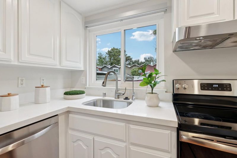 - Countertop - Quartz, Dishwasher, Exhaust Fan, Garbage Disposal, Hood Over Range, Oven Range - Electric, Refrigerator