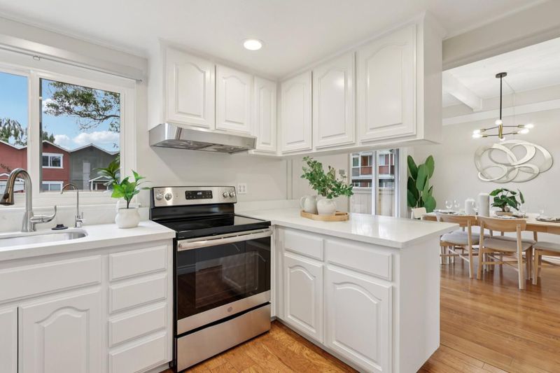Nestled in a peaceful tree-lined neighborhood in the heart of Mountain View, this stunning 3-bedroom, 1.5-bath PUD townhome offers a perfect blend of modern comfort and prime location. The main level features an open light-filled floor plan ideal for both everyday living and entertaining. A spacious living area opens to a private backyard, and the seamless flow into the contemporary kitchen creates an inviting gathering space. The kitchen is beautifully appointed with high-end appliances, quartz countertops, and ample cabinetry, making it a true chef's delight. Upstairs, the three generous bedrooms feature bright nature light and offer versatile space for family, guests, or a home office. A convenient half bath on the main level adds to the home's thoughtful layout. Distinctive upgrades include fresh interior paint, central heating, Nest smart thermostat, modern recessed lighting, newly designed mirrors and much more. Just minutes from vibrant downtown Mountain View, with easy access to shopping, dining, parks, hiking trails, and top-rated schools. With quick connections to Highways 101 and 85, commuting to major tech campuses such as Google and Meta is effortless. This exceptional townhome combines comfort, convenience, and an unbeatable Silicon Valley lifestyle!