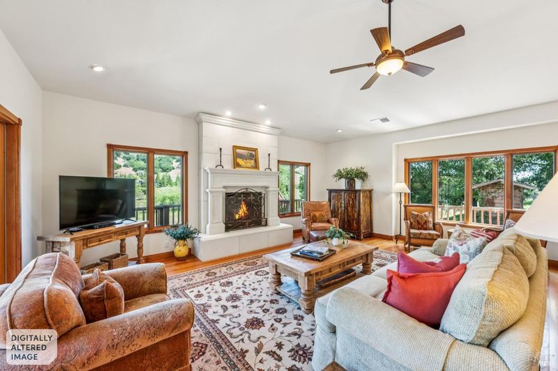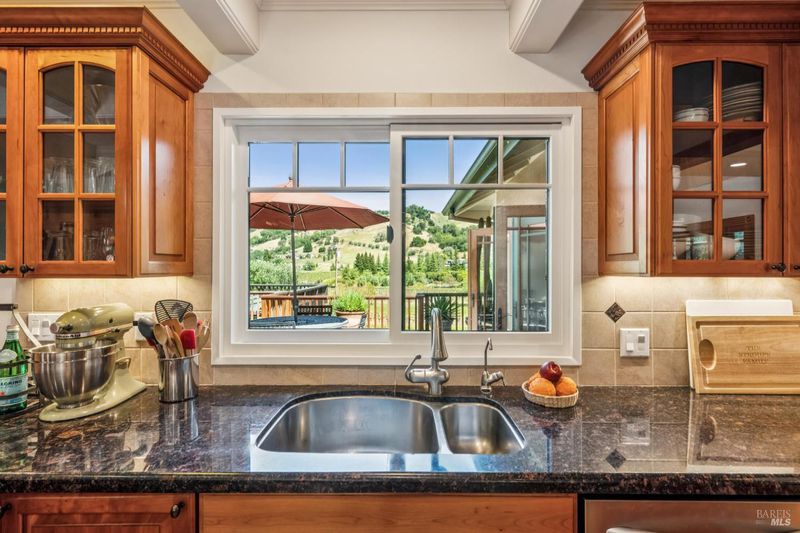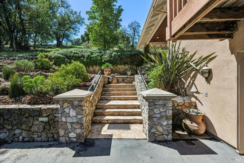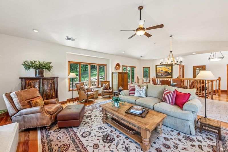 Perfectly located on coveted Lovall Valley, this property is situated on Sonoma's Eastside and showcases exceptional views of nearby vineyards and surrounding hillsides. A gated entry leads past stone walls and native landscaping to a hobby vineyard with approximately 300 mature Petit Verdot vines. Upon entering the residence, you are greeted by a spacious living room with cathedral ceilings and expansive windows designed to capture the dramatic landscape and natural light throughout the day. Gleaming fir floors and a gas fireplace create a warm, inviting atmosphere. The kitchen is equipped with a Wolf range, Sub-Zero refrigerator, generous storage, and connects seamlessly to the dining area, which features coffered ceilings and French doors that open to the grounds. The outdoor areas are thoughtfully designed and include a pergola draped in trumpet vines, creating a natural extension of the living space and a perfect setting for entertaining friends and family. The single-level layout offers three bedrooms and two and one-half bathrooms, all with consistent wood flooring. The expansive primary bedroom features high ceilings and French doors that lead to a nearby deck. Enjoy all that Sonoma Valley has to offer in this inviting Wine Country retreat, centered around views, indoor-outdoor living, and a strong connection to Sonoma's natural beauty.