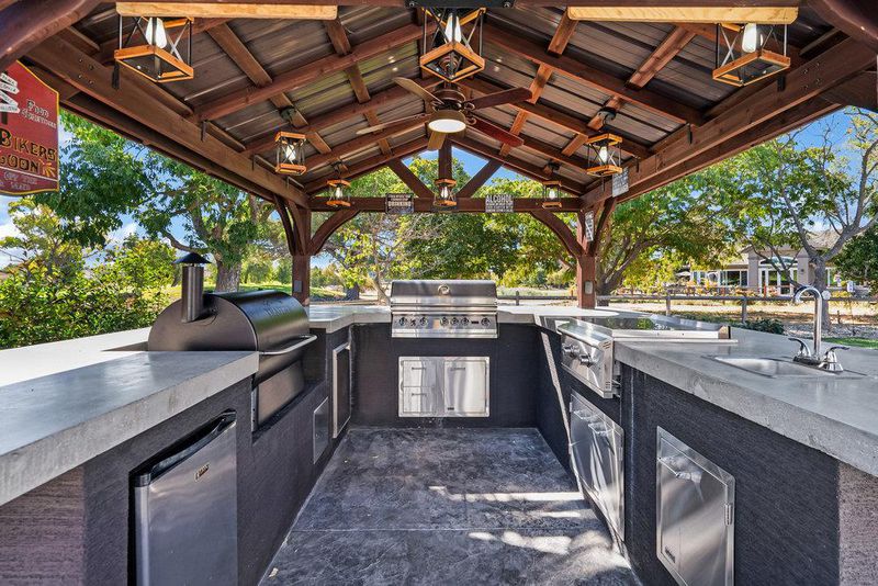 Entertainers Paradise with Seamless Indoor-Outdoor Living: This residence blends sophisticated style with functionality. The well-appointed office & custom fish tank create a distinctive first impression, leading into an expansive great room anchored by timeless flooring & walls of windows that fill the space with natural light. The open layout flows effortlessly into a spacious dining area & a gourmet kitchen curated for everyday living & gatherings. Quartz countertops, professional-grade stainless steel appliances, a built-in refrigerator, generous prep surfaces, & abundant cabinetry provide both beauty & performance. Technology enhances the experience with app-controlled window coverings and an integrated smart system that manages heating & cooling for tailored comfort. The primary suite offers a private retreat w generous closet space & a spa-inspired bath. All bathrooms include bidets for added convenience. The sliding glass doors open to a covered patio overlooking a built-in fire pit and golf course views off the great room. The 12x14 outdoor kitchen is fully equipped with a smoker, flat grill, BBQ, lighting. Lots of upgrades include epoxy garage floors, a generator, stamped concrete, 200 amp electrical panel, dog run, spa, double sided fireplace, hunter douglas shades