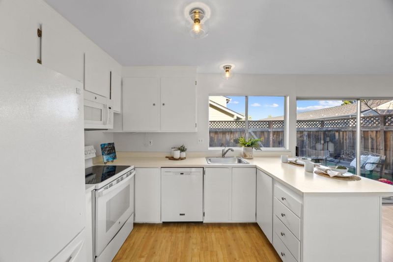 Step into this well cared for attached townhome where comfort and practicality come together. As you enter, you are welcomed into a warm living room anchored by a fireplace with gas starter, creating an easy space to relax or gather. Laminate flooring runs through the main level, offering both style and durability. The dining area sits just off the living room and flows naturally into the kitchen, which overlooks the rear patio. A sliding glass door opens to a private, well sized outdoor space that feels tucked away and is ideal for morning coffee or casual evenings at home. A conveniently located hallway laundry area adds to the everyday ease of living, along with a main level half bath for guests. Upstairs, you will find three comfortable bedrooms and two full bathrooms. The primary suite features its own en-suite bath with dual sinks, providing a functional and private retreat. Additional highlights include a detached two car garage, offering both parking and extra storage. Set within a city known for its waterfront paths, parks, and everyday conveniences, Foster City continues to be one of the most sought after places to call home.