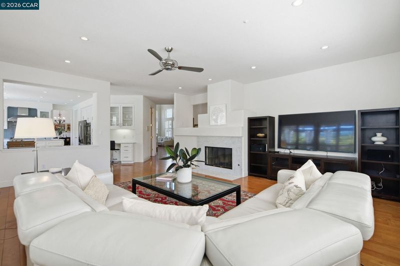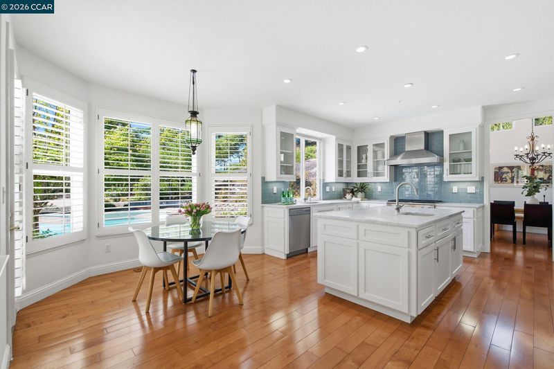 Gorgeous Moraga home located just a few minutes from Rancho Laguna Park. Soaring ceilings, walls of glass, lots of natural light, hardwood floors, generous size rooms and amazing flow. Striking living room with a high ceiling, gas fireplace and adjacent dining room with access to the backyard. Remodeled kitchen with white cabinetry, stone countertops, glass tile backsplash and high-end appliances. The spacious family room is adjacent to the kitchen. There are a bedroom suite and an office on the main level. The primary suite boasts a recently remodeled bathroom, large walk-in closet and a view of the pool & gardens. There is a fantastic bonus room on the second level of the residence that is currently set up as a home theater with projection TV. The backyard features a pool, patios, deck, sports court and lovely gardens. Welcome to Moraga, a highly desirable community with top rated public schools, hiking & biking trails, abundance of open space & Sunday Farmers Market.