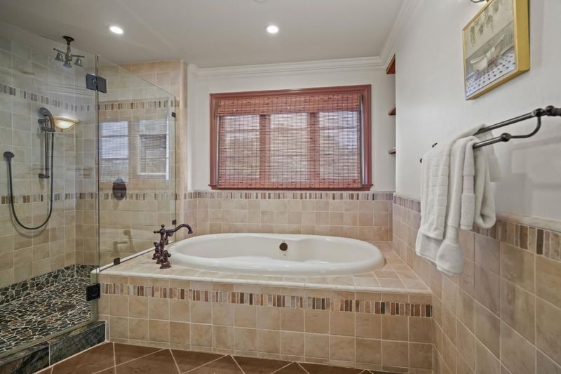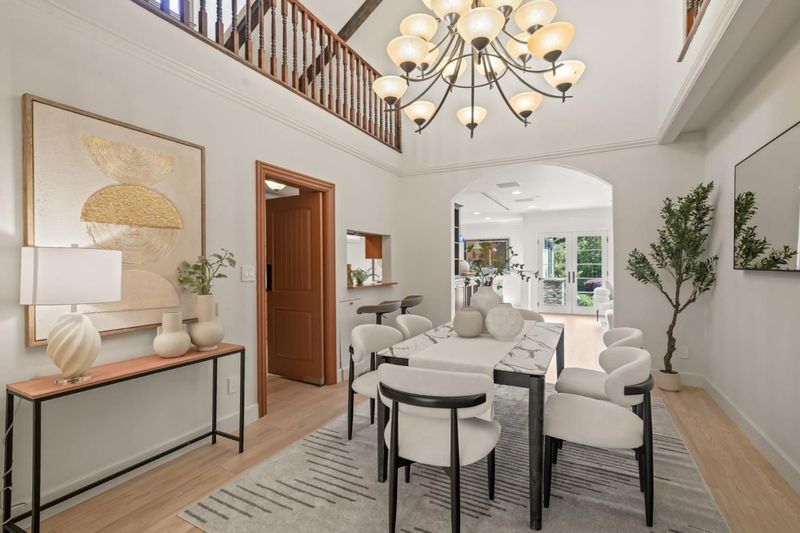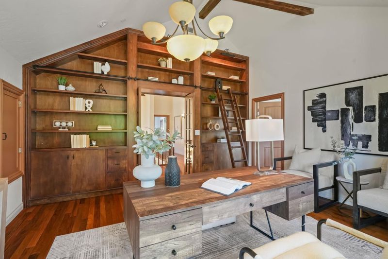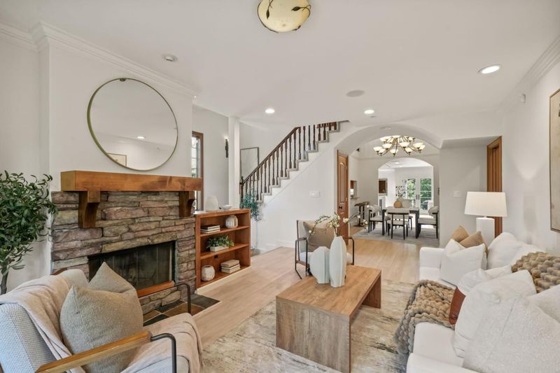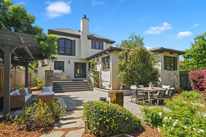 Remodeled and expanded in 2006, this Burlingame stunner offers a flexible, thoughtfully designed floor plan for modern living. Set on an oversized, private lot with mature landscaping, the home blends timeless elegance with everyday comfort. The main level features a formal living room with gas-assist wood fireplace and dining room with soaring two-story ceiling and statement chandelier. The chef's kitchen includes stainless steel appliances, granite countertops, breakfast bar, and eat-in area, opening to a home theater family room with surround sound. A laundry/pantry with additional oven and refrigerator adds convenience. The main level includes two bedrooms with a hall bath, plus a junior primary suite with en-suite bath, walk-in closet, and private rear entrance ideal for guests, extended family, or au pair. Upstairs, the primary suite offers dual walk-in closets, along with a wood-paneled library with custom shelving and sliding ladder, a 5th bedroom, and hall bath. Additional features include new flooring and paint, plus attached one-car garage. The backyard is designed for California living with a built-in BBQ, plumbed gas firepit, and water feature surrounded by a sunny yard and lush landscaping. Walk to top-rated Burlingame schools, Caltrain, and downtown Burlingame.