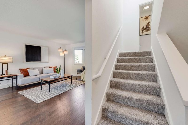 Welcome to 159 Centre St, a bright and inviting 2-bedrooms, 2.5-bathroom townhome offering 1,232 sq ft of comfortable living in the heart of Mountain View. Nestled between two stunning redwood trees, this charming home blends tranquility with unbeatable convenience. Short walk to vibrant downtown Mountain View. Thoughtfully updated, home features an open-concept layout where the kitchen flows seamlessly into the dining and living areas perfect for entertaining. Kitchen showcases updated cabinetry, Corian countertops, stainless steel appliances, and a private balcony. The spacious living area opens to a private patio, creating the perfect setting to relax or host guests. Enjoy laminate flooring on the main level and plush carpeting in the bedrooms. Primary suite boasts an oversized closet with custom shelving. Both bathrooms have been freshly reglazed, offering a clean, refreshed feel. Additional highlights include central heating, extra storage off the balcony, an attached oversized 2-car garage, and a convenient indoor laundry room. HOA with amenities including a pool, hot tub, clubhouse, garbage service, and guest parking. Ideally located with quick access to Hwy 237, 85, 101, 280, Central Expressway, and major tech campuses like Google, Microsoft, and LinkedIn. Come quickly!