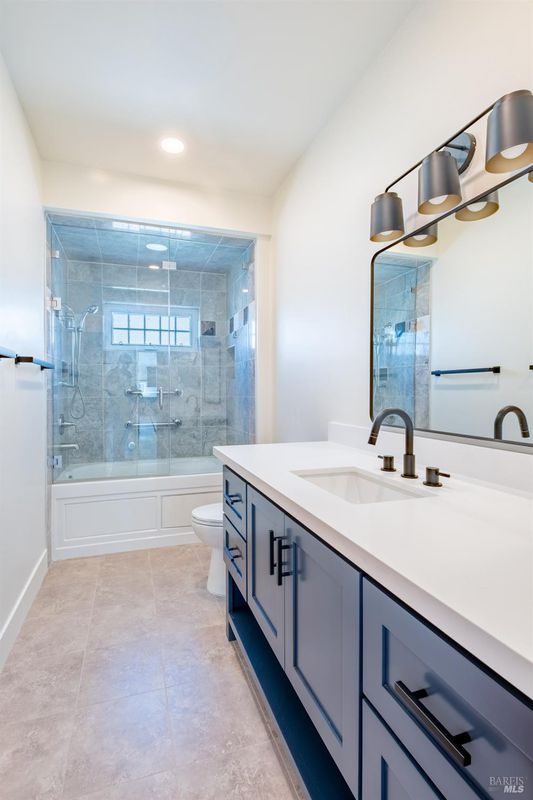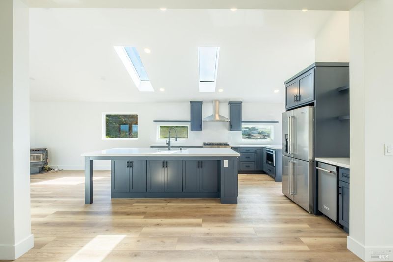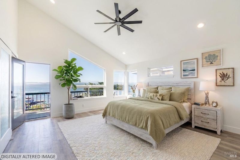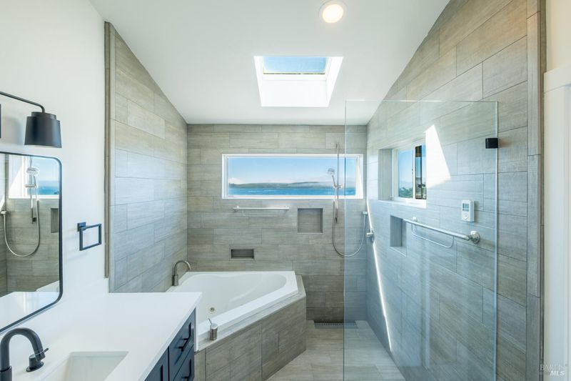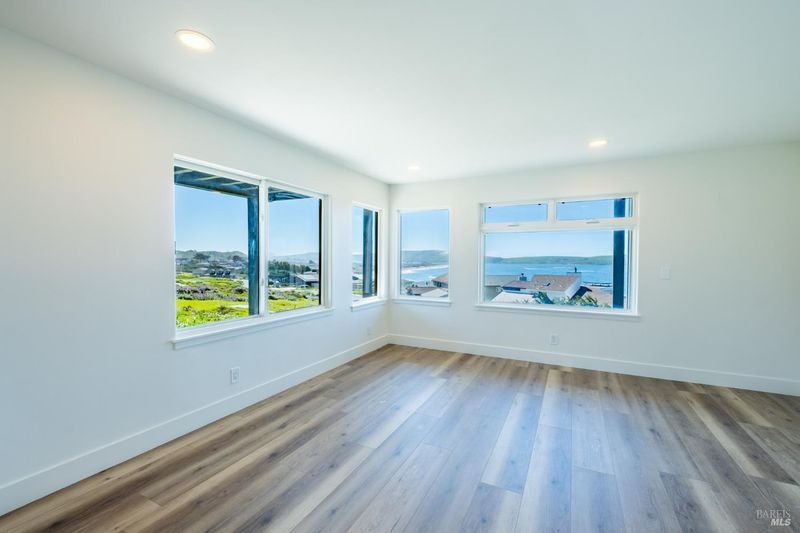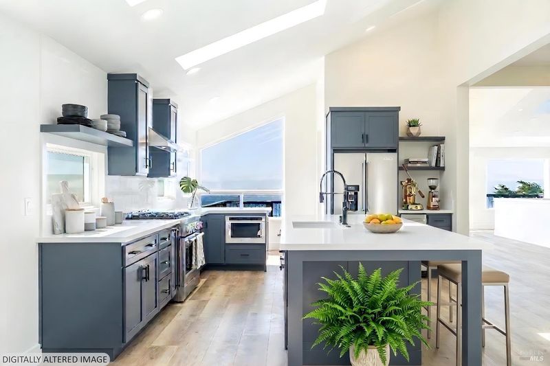 Perched just above the shore where Dillon Beach meets Tomales Point, this 4-bedroom, 3-bath modern residence offers something increasingly rare along the Northern California coast magical views of the Pacific and the sound of crashing surf. Just over 2,800 square feet, the home has been thoughtfully re-imagined by the current owners. High ceilings and an abundance of skylights flood the great room with natural light, while generous windows frame the sweeping seascapes. The open-plan living and dining area is anchored by a brand-new chef's kitchen featuring a commanding island, never-used stainless appliances, and warm light engineered flooring that flows throughout the home an interior palette that feels both modern and deeply coastal. Then walls provide a stunning backdrop for art, while a breakfast nook and eat-in counter invite the slower mornings this setting calls for. The primary suite features a pitched ceiling, a private deck with views to the sea, a light filled bath, as well as a generous walk-in closet. Two additional bedrooms on the same floor share a full bath. Downstairs, a private bedroom suite with its own beach views offers flexibility for guests, creative pursuits, or playroom/office area. A wraparound deck at the front of the home is perfect for entertaining and sunsets. The beach is a short stroll away. A large two-car garage, brand-new HVAC, and a tankless water heater ensure that the comforts of the home are as considered as its setting. Charming bakeries await nearby as well as the pristine, briny oysters of Tomales Bay some of the finest in the world.. The Village is a short stint from your doorstep. This is the California coast at its most authentic.
