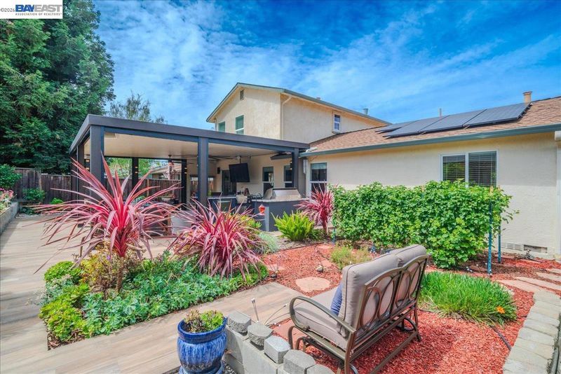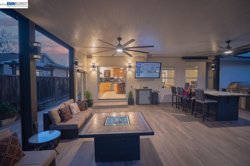 Welcome to one of north Livermore's most versatile offerings. This ranch-style gem works as a 4/3 main home with a private 1/1 ADU — or a fully connected 5-bedroom, 4-bathroom multi-generational retreat. Two ensuite suites (one up, one down), a designer kitchen with maple cabinets and black magma granite, open-concept living, dual-zone HVAC, two solar arrays, EV charging, and a smart home system check every box inside. Outside: the showstopper — 600+ sq. ft. of outdoor family room with motorized screen walls, a full outdoor kitchen, custom A/V, and a 65" TV. Quiet street. Turnkey. Exceptional. Livable. Lovable. Affordable.