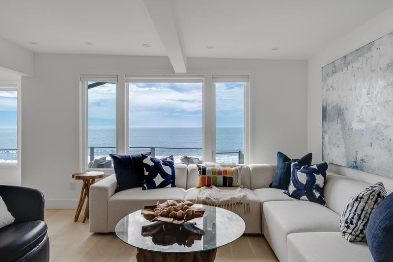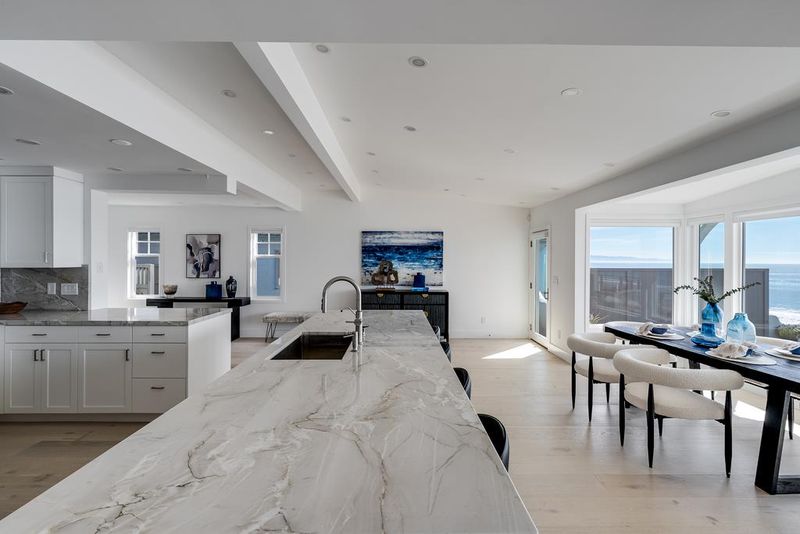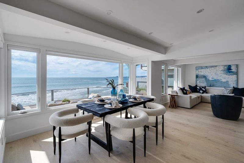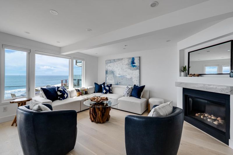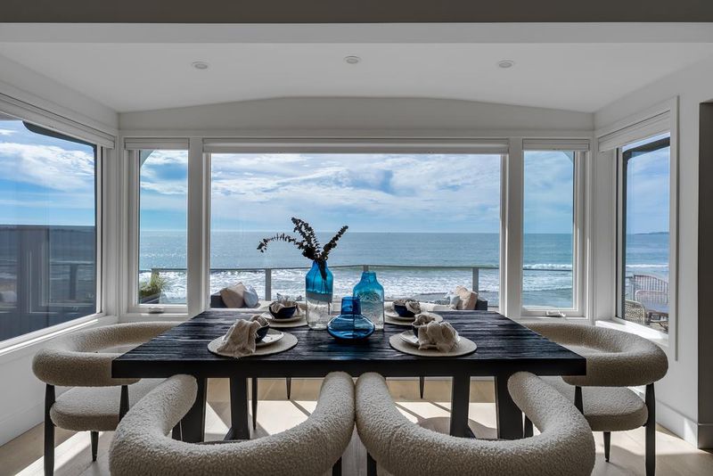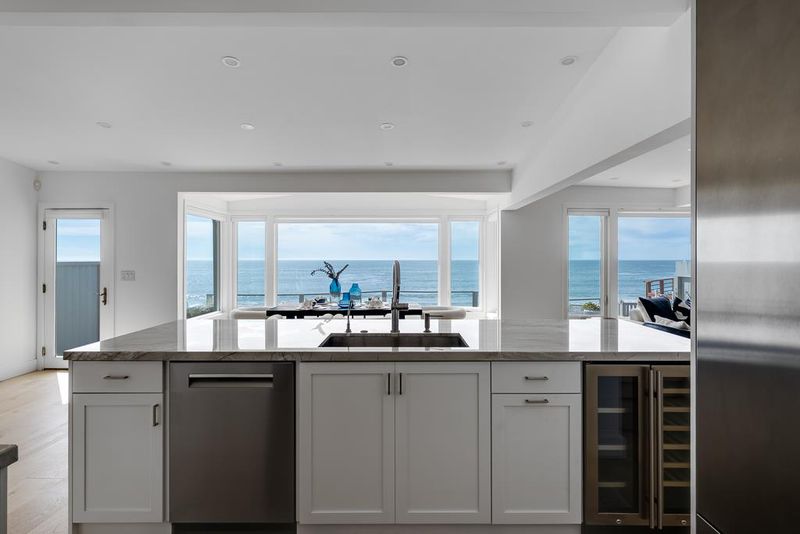 Let's start with the obvious: whoever designed this house refused to waste a single ocean view. Every room was thoughtfully positioned to capture the water. Sitting in the living room? Ocean. Cooking in the kitchen? Ocean. Gathered around the dining table? Still ocean. Large windows pull the coastline into the home so the views are part of everyday life. The kitchen & dining area may have the best seats in the house. Cooking dinner here means watching the waves roll in while the sky slowly shifts toward sunset. High-end appliances, a wine fridge & thoughtful upgrades make the space as functional as it is beautiful. Step out onto the spacious deck & the view opens up even more. It's perfect for morning coffee, evening wine, or simply letting the sound of the ocean do its thing. When you're ready for the sand, private steps lead down toward the beach. The Point is just down the street ready for some surf. Another rare bonus: after nearly two years of work, Coastal Commission approval has been secured to re-stack the shoreline rocks, something many coastal homes never get. And yes sunsets here are exactly as good as you're hoping they are.