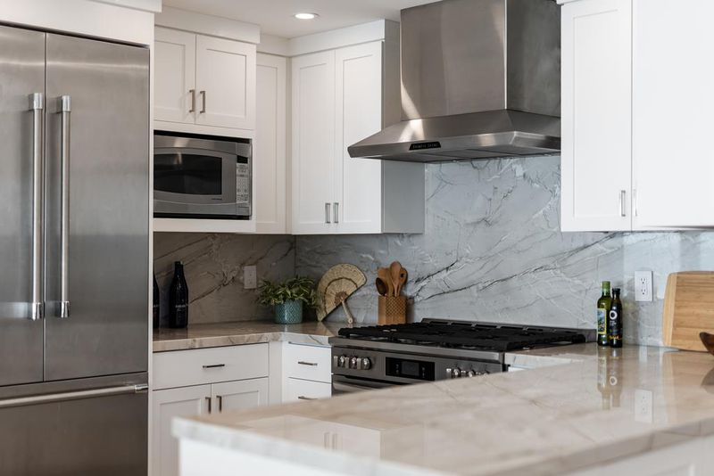 - Countertop - Quartz, Dishwasher, Hood Over Range, Island with Sink, Microwave, Oven Range - Gas, Refrigerator, Wine Refrigerator