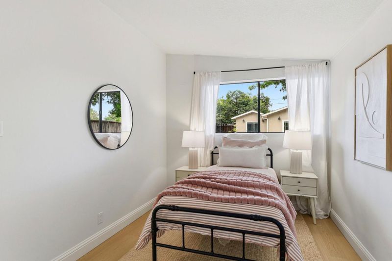 Centrally located Sunnyvale home in Lakewood Village. This home has so many possibilities. Live in it the way it is or potentially split the lot and develop under SB9 (dual urban opportunity housing). Buyer to verify with the City. The property currently has a front house and a Cabana/ADU. Updated 3/2 front house has been freshly painted, new flooring, new lighting, updated heating system, and updated primary bath. Large windows flood the home with natural lighting. Dual pane windows. The kitchen has been previously remodeled with a gas stove and granite countertops. New dishwasher. Washer and dryer stay with the front house. 2-car garage has plumbing for shower and toilet. New roof was finaled 5/25. Charming Cabana/ADU is a 1/1 built in 2018 with permits. ADU does not have heat or a kitchenette. This is a must see. Property is located in the middle of a tree-lined street. Easy access to 101 and major tech companies.
