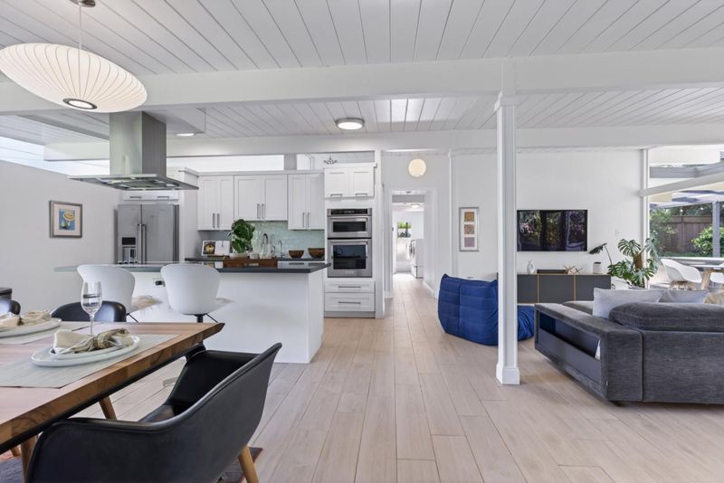Gorgeous Eichler-style home in the highly sought-after Highlands community, showcasing the best of indoor-outdoor living with an open floor plan and abundant natural light. This 4-bedroom, 2-bath residence features an updated kitchen with a spacious island that flows seamlessly into the expansive living and dining areas, perfect for both everyday living and entertaining. Well-appointed bedrooms and updated bathrooms offer comfort and modern style. The spacious front yard provides privacy, while the beautifully landscaped backyard boasts a redwood deck, seasonal blooms, and a variety of fruit trees including orange, lemon, pear, apple, apricot, mulberry, and avocado. Located in a desirable neighborhood known for its strong community feel and scenic surroundings, this home is just minutes from shopping, hiking trails, and top-rated schools, with easy access to major freeways for a convenient commute.