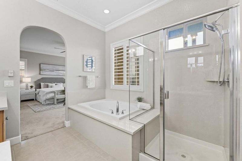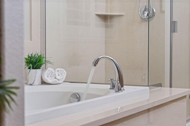 - Double Sinks, Stall Shower, Tile, Full on Ground Floor