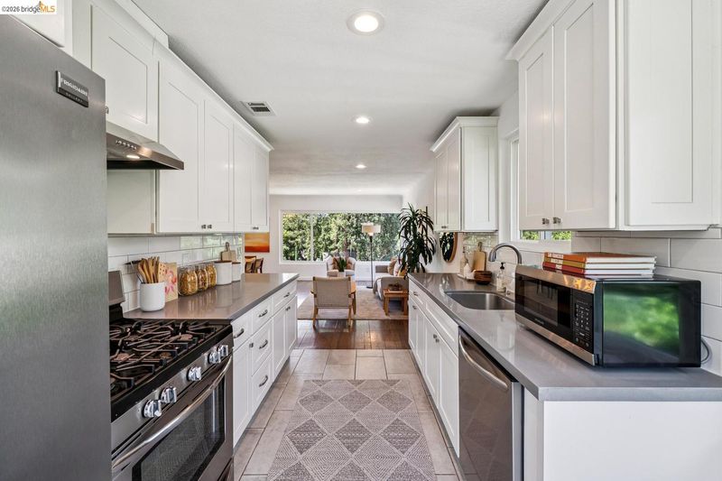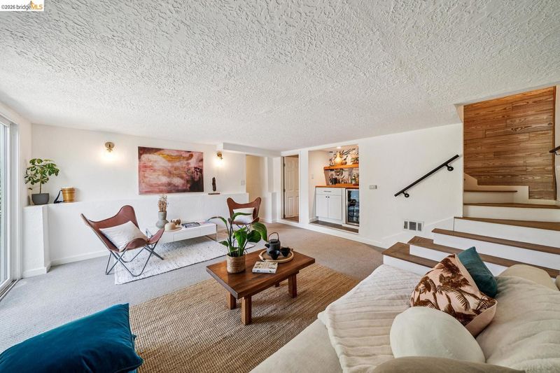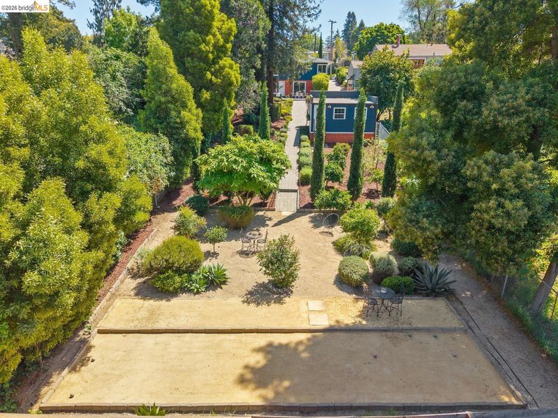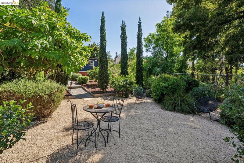 Set on an expansive and beautifully curated .26-acre lot, this is a home where the garden isn't an amenity-it's the experience. Inside, large picture windows frame verdant views at both the front and rear, drawing greenery into the open living, dining, and kitchen spaces. On the lower level, a generous family room with dry bar opens directly to the rear patio-creating a natural extension for entertaining or relaxed daily living. With its own entrance, this level offers flexibility for guests, work-from-home, or extended living. Out back, the grounds unfold as a series of outdoor rooms-thoughtfully designed for gathering, gardening, and play, with a sense of scale and usability rarely found. Set within Oakland's King Estates neighborhood, the home offers a balance of access and retreat, with close proximity to freeway routes and TransBay bus lines. A detached two-car garage, EV charging, solar, air conditioning, and an extended driveway bring ease and efficiency to match the scale of the property.