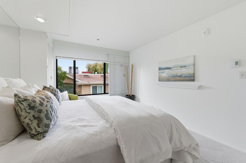 End-unit penthouse condo just blocks from vibrant downtown San Carlos. This 2-bedroom, 2-bathroom residence is ideally positioned in one of the most desirable locations in the building. A formal entry welcomes you into a light-filled living room with soaring vaulted ceilings, seamlessly connecting to a formal dining area that opens onto a private deck nestled in the trees. The thoughtfully designed kitchen offers both functionality and flow. Just down the hall you have a spacious primary suite with dual closets, while the second bedroom includes its own private balcony, offering added comfort and privacy. A separate laundry room with washer and dryer enhances everyday convenience. Prime location, walking distance to restaurants, shops, the library, adult community center, top-rated schools, and just a short stroll to the Caltrain station. This well-maintained, contemporary complex consists of only 24 units and offers recreation rooms on each floor, a pool and spa, inviting lobby, elevator access, and wide, well-lit hallways. Additional highlights include extra storage and two secure underground parking spaces.
