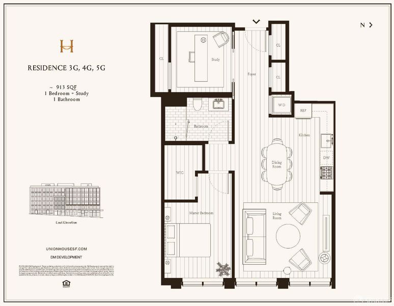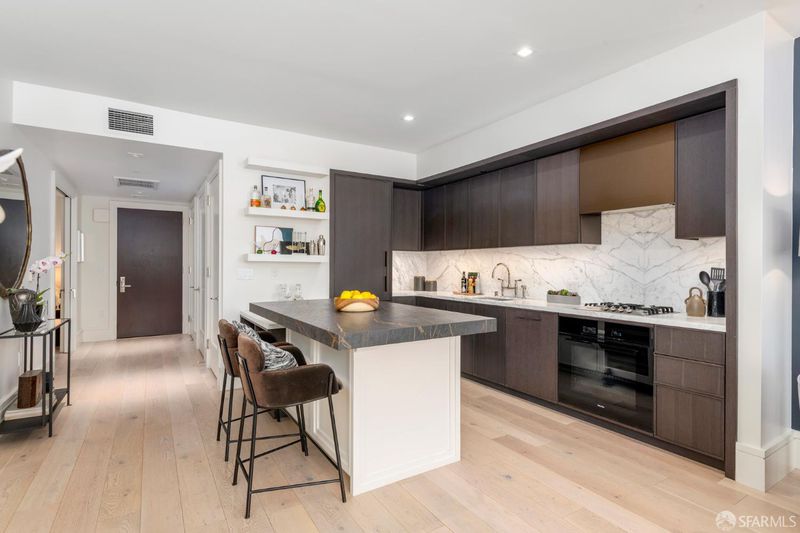 Offered for the 1st time as a resale, Residence 4G is Union House's only 1BR+Den home ever to come to market. An extraordinary opportunity in one of San Francisco's most coveted luxury boutique buildings. Completed in 2020, Union House blends timeless architectural inspiration with refined contemporary design at the nexus of Pacific Heights, Russian Hill, Cow Hollow, and the Marina. This bright and beautifully scaled home features oversized picture-frame windows, high ceilings, and European wide-plank oak flooring throughout. The open living space includes a chef's kitchen with white quartz counters, Miele appliances, a 4-burner gas cooktop, spacious island with wine fridge and microwave, and generous storage. The large den offers flexibility for an office or guest space. Residents enjoy a wonderful staffed front desk team, secure entry, additional storage, and an expansive furnished rooftop terrace complete with BBQ grill, gas fireplace, and sound system - perfect for taking in stunning views of the Golden Gate Bridge and the Bay. A rare opportunity to live in a newly built luxury building in the north side of the city won't last long. A parking space may also be available for lease.