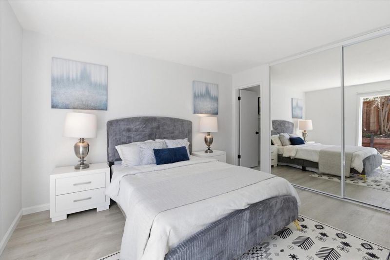 This move-in ready 3 bedrooms, 2 full bathrooms home was beautifully updated and modernized. It features a functional layout with open living room and dining room areas that are perfect for family gathering or entertaining. The NEW Kitchen boasts of a modern design with white cabinets & granite countertop that are elegantly paired with understated black and white tiled backsplash, black cabinet fixtures and faucet, and NEW stainless steel appliances! This generous kitchen space accommodates an eat-in area. Two full bathrooms are upgraded with granite wall slabs, NEW vanities with granite vanity tops, and NEW light fixtures. The primary bedroom opens into a private backyard with a patio that is perfect for relaxing or entertaining. This home is updated with NEW double-pane windows & sliding door, NEW waterproof vinyl floors throughout this home, and freshly painted interiors! It also has a NEW furnace and a NEW water heater!