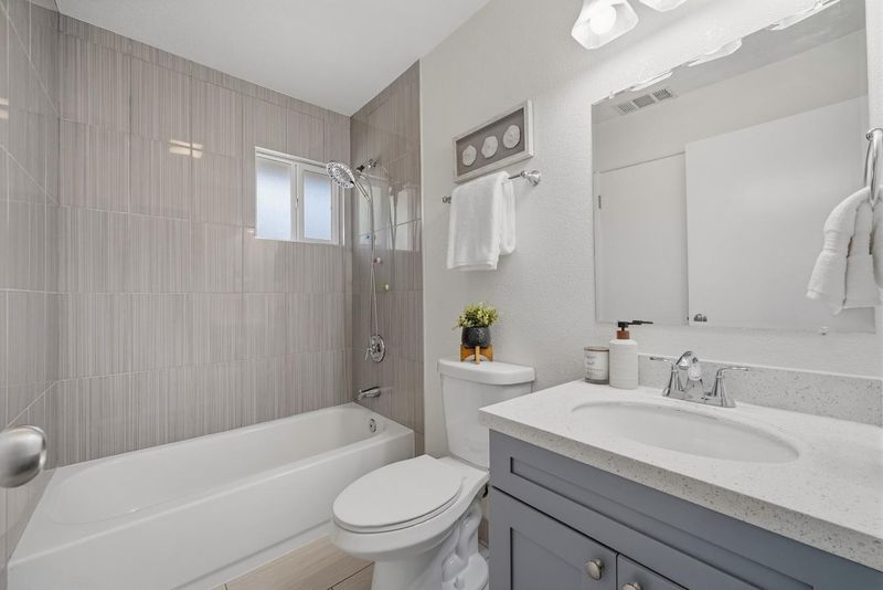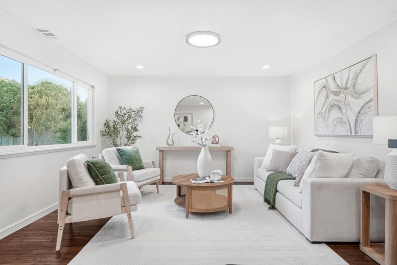 Welcome to this charming single-family home with 3 beds and 2 baths on an 8,310 sqft lot, served by top-rated Cupertino High. The home greets you with flowers in the front yard flower bed. Inside, a modern kitchen sits to the left with quartz countertops, tile backsplash, stainless steel appliances, and ample cabinetry, flowing into the dining area. The connected living room features a ceiling light, recessed lighting, and large windows overlooking the backyard. A sliding door leads to an enclosed sunroom, ideal as an office or activity room, plus a shaded outdoor space for relaxation. The primary suite is at the end of the hallway with an en-suite bath featuring quartz countertop and a stall shower. Two additional bedrooms serve family and guests, and the hallway bathroom offers a quartz countertop and shower over tub. The large private backyard features a green lawn and many surrounding fruit trees, perfect for outdoor activities. Additional highlights include an attached two-car garage with washer and dryer. Close to Cupertino, near restaurants, grocery stores, Central Park, and shopping at Valley Fair. Just 8 minutes to Apple Park with easy access to Lawrence Expressway and Highway 280 for an easy commute to major tech companies. Do not miss this great opportunity!