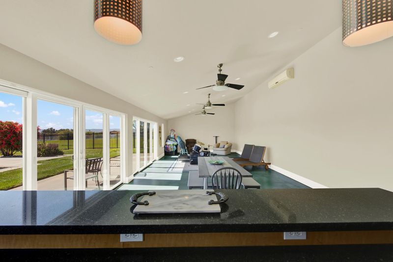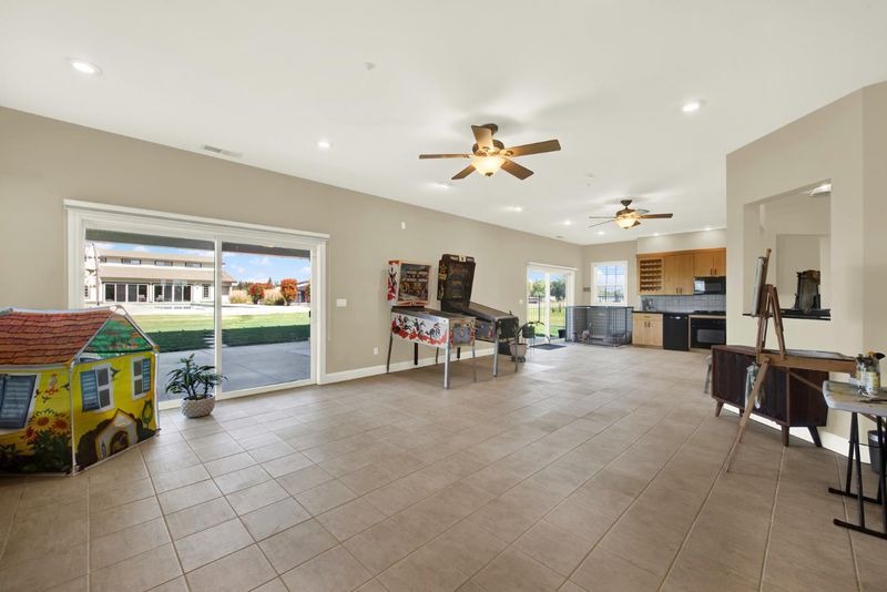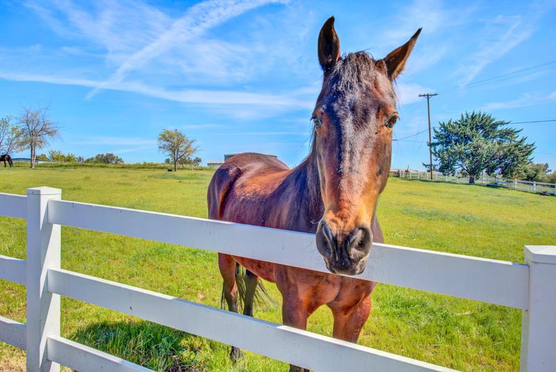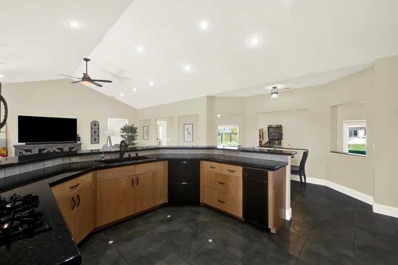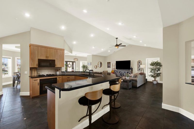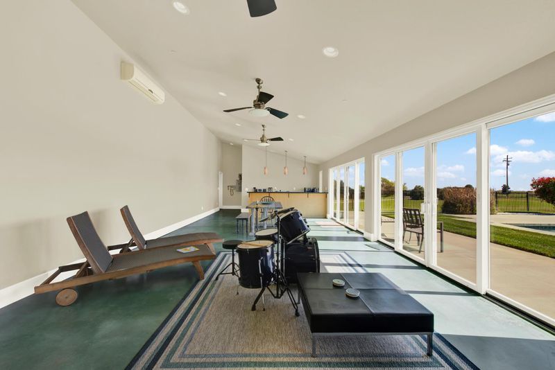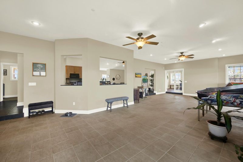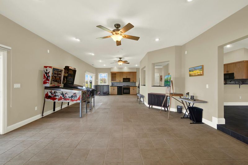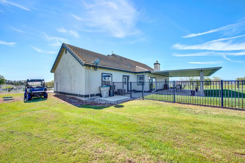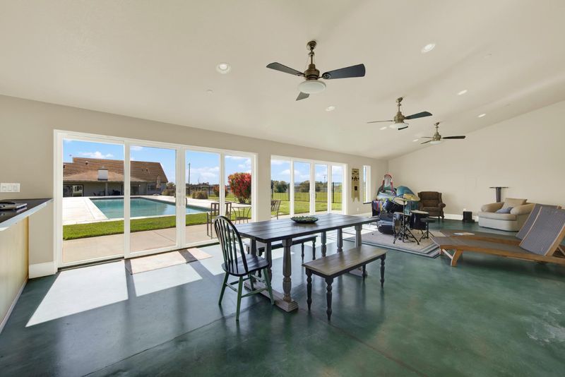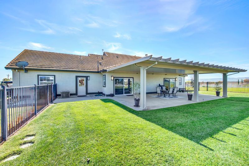 Perched atop a gentle knoll, this exceptional custom home offers breathtaking sunset views and a serene sense of privacy. A sweeping gated entrance and classic white fencing welcome you to your own private retreat. Designed with both comfort and elegance in mind, the open-concept floor plan features a sun-filled great room that flows seamlessly into the gourmet kitchen, complete with granite countertops, an expansive pantry, and generous bar seating. The adjoining formal dining area provides the perfect setting for refined entertaining. A standout feature of the home is the spacious entertainment room, equipped with a secondary full kitchenideal for hosting large gatherings with ease. The luxurious primary suite offers a spa-inspired bath with separate tub and shower, a walk-in closet, and an adjacent office filled with abundant natural light. Step outside to enjoy a beautifully designed outdoor living space, featuring a large patio with a newly constructed cover, overlooking a sparkling pool and spa. The impressive pool house includes a kitchen and bath, offering excellent potential as an ADUperfect for multi-generational living, guests, or rental opportunities. Additional amenities include an oversized two-car garage, owned solar for energy efficiency, and a comprehensive water conditioning system. The property is thoughtfully equipped with a 2-inch irrigation system encircling the perimeter for ease of maintenance. Equestrian enthusiasts will appreciate the four-stall horse barn with reinforced steel pipe fencing. Completing the property is an extraordinary 50x50 fully finished, insulated, and painted shop, featuring two large roll-up doors for RV drive-through access, two additional roll-up doors, and finished concrete flooring. Meticulously maintained and thoughtfully designed, this one-of-a-kind property offers the perfect blend of luxury, functionality, and country charm.