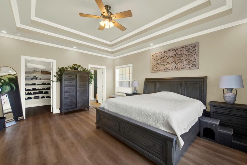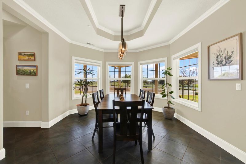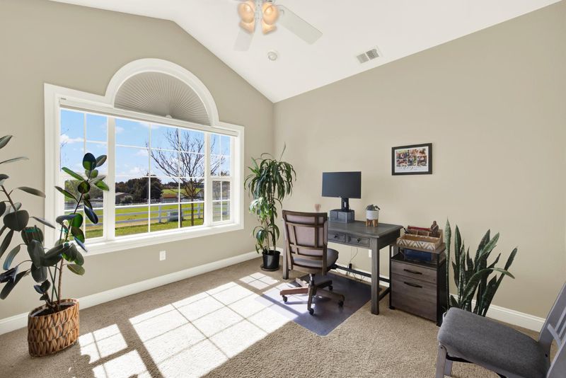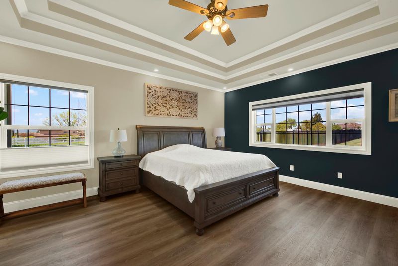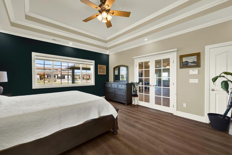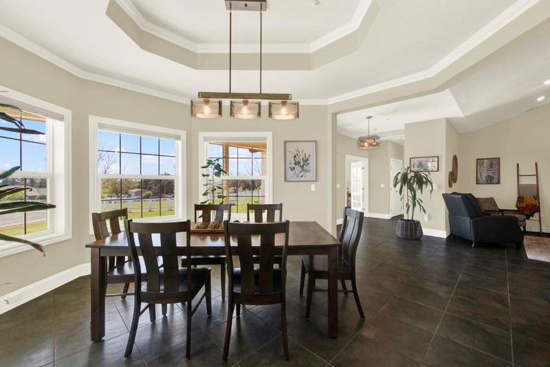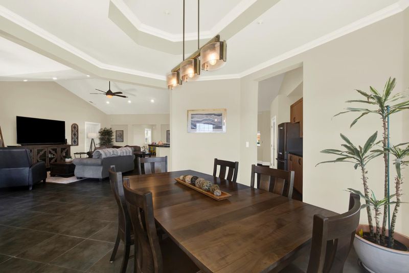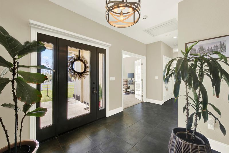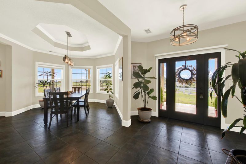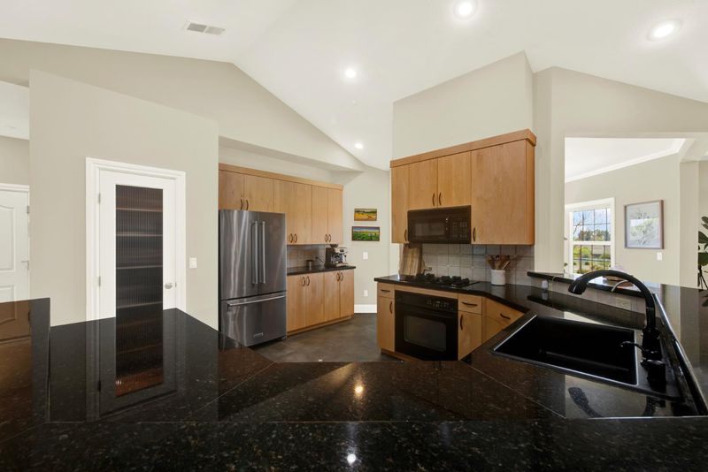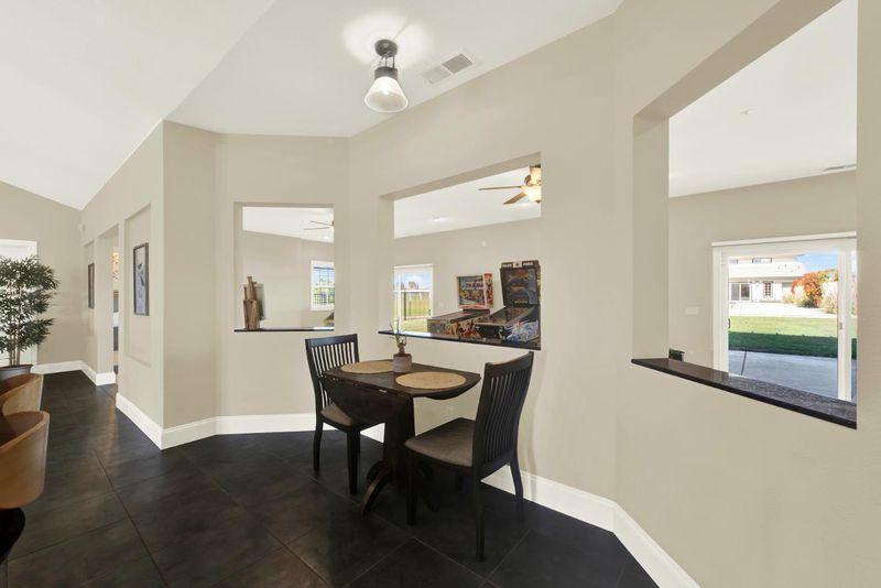 Perched atop a gentle knoll, this exceptional custom home offers breathtaking sunset views and a serene sense of privacy. A sweeping gated entrance and classic white fencing welcome you to your own private retreat. Designed with both comfort and elegance in mind, the open-concept floor plan features a sun-filled great room that flows seamlessly into the gourmet kitchen, complete with granite countertops, an expansive pantry, and generous bar seating. The adjoining formal dining area provides the perfect setting for refined entertaining. A standout feature of the home is the spacious entertainment room, equipped with a secondary full kitchenideal for hosting large gatherings with ease. The luxurious primary suite offers a spa-inspired bath with separate tub and shower, a walk-in closet, and an adjacent office filled with abundant natural light. Step outside to enjoy a beautifully designed outdoor living space, featuring a large patio with a newly constructed cover, overlooking a sparkling pool and spa. The impressive pool house includes a kitchen and bath, offering excellent potential as an ADUperfect for multi-generational living, guests, or rental opportunities. Additional amenities include an oversized two-car garage, owned solar for energy efficiency, and a comprehensive water conditioning system. The property is thoughtfully equipped with a 2-inch irrigation system encircling the perimeter for ease of maintenance. Equestrian enthusiasts will appreciate the four-stall horse barn with reinforced steel pipe fencing. Completing the property is an extraordinary 50x50 fully finished, insulated, and painted shop, featuring two large roll-up doors for RV drive-through access, two additional roll-up doors, and finished concrete flooring. Meticulously maintained and thoughtfully designed, this one-of-a-kind property offers the perfect blend of luxury, functionality, and country charm.