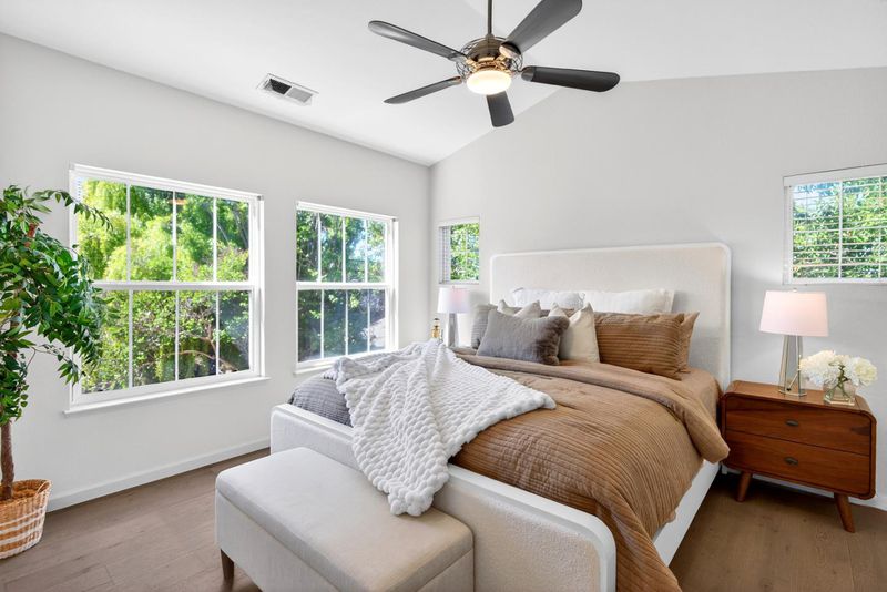 Newly remodeled, towering two-story beauty nestled on a peaceful street. Ideally located near highly rated schools, Columbia and Fair Oaks Park, major tech campuses, and under two miles from Downtown Sunnyvale and its Caltrain station, this home offers both convenience and an exceptional lifestyle. Inside, wide-plank oak flooring leads into a stunning, freshly painted living room with soaring vaulted ceilings, highlighted by a striking mid-century chandelier, while dual-pane windows fill the home with natural light. Heat/AC, along with a cozy fireplace, provide year-round comfort. The updated kitchen/family room features high-end stainless steel appliances, quartz countertops and beautifully re-painted cabinetry. All bedrooms are comfortable and include their own closets, while the primary suite showcases a spa-like en-suite bath with a double vanity, oversized soaking tub, separate shower, and a spacious walk-in closet. Additional highlights include a two-car garage, a dedicated laundry closet with washer and dryer, and a private, sun-drenched backyard with lush landscaping, featuring a variety of plants, flowers, and trees. With easy access to Highway 101 and Central Expressway, this is an exceptional opportunity in one of Sunnyvales most convenient locations. It will go FAST!